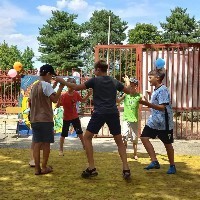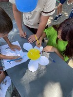 12 июля. Утро началось с зарядки и посещением плавательного бассейна ,,Юность,,. Набравшись энергии и прохлады от воды, дети приняли активное участие в конкурсе рисунков на асфальте ,,Я рисую лето,,. Каждый вкладывал свою фантазию, творческий подход в раскрытии темы. Жюри было трудно выделить лучший рисунок. Все участники заслужили похвалу и аплодисменты. Затем ребята приняли активное участие в эстафетно- командных конкурсах праздника ,,День воздушного шарика,,. Все эстафетные этапы вызывали у детей бурю эмоций и желание победить. Победа досталась команде красных шариков, но никто не расстроился, так как всем было весело и интересно. Завершился день работой кружков по интересам.