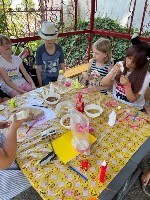 16 июля выдался солнечным, жарким днем, но это не помешало осуществить запланированное. Дети посетили краеведческий музей, познакомились с традициями и бытом предков, поучаствовав в мастер- классе ,,Погружение в культуру предков,,. Ребята попробовали носить воду на коромысле, стирать вручную на стиральной доске, познакомились с экспонатами, раскрывающими тему быта и традиций наших предков. Затем ребятам предложили поучаствовать в командной игровой программе ,,Делу время - потехе-час,,. С интересом, активно дети угадывали по рисункам названия песен, затем их исполняли, готовили для команды противника пантомимы, по которым надо было угадать песню, ее название и из какого она мультфильма и т. д. Дети активно с азартом выполняли все задания, переживали за результаты, но по решению жюри в этой игровой программе победила дружба. После обеда весело, интересно увлеченно все участвовали в познавательно- развлекательной программе ,,Давай потанцуем,,. Ребят познакомили с историей возникновения танцев, историей вальса, танго, с классификацией танцев. И конечно вначале предложили детям самим пробовать составить танец на определеную музыку, а затем разучивали танцевальные движения русских народных танцев, сертаки, вальса. И завершили день мини дискотекой. Довольные, с приподнятым настроением ребята уходили домой.