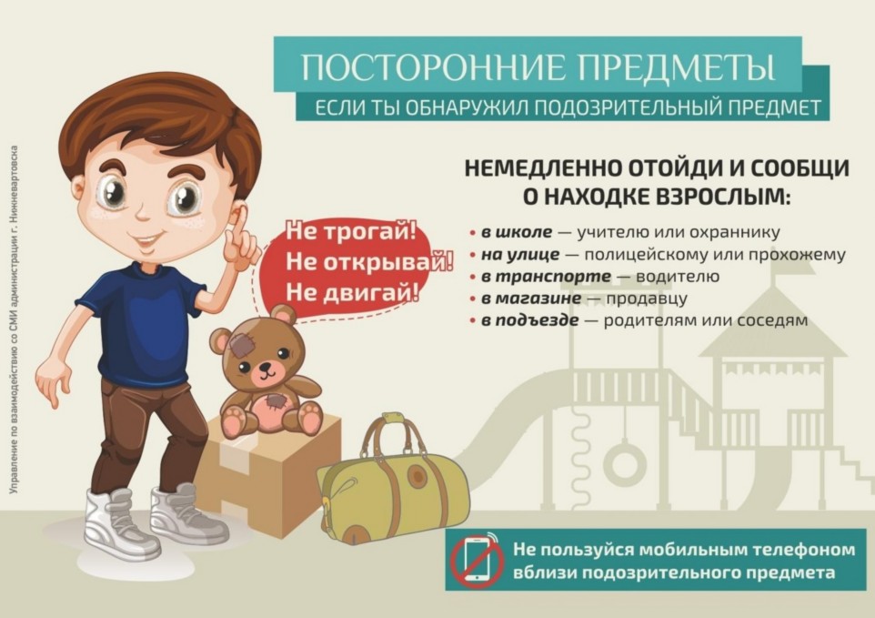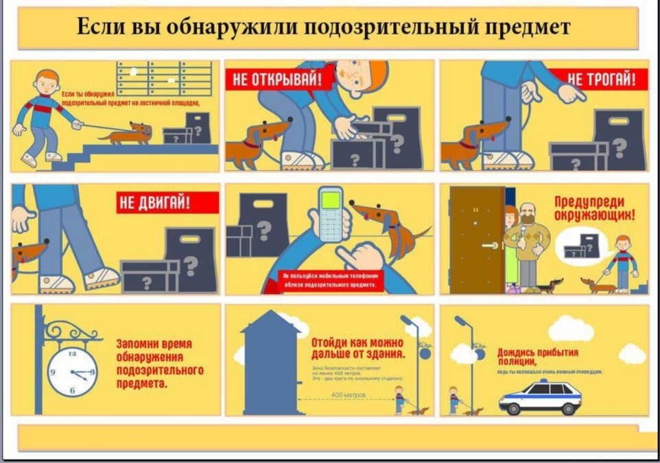 Если вы обнаружили подозрительный предмет в учреждении, немедленно сообщите о находке администрации.
