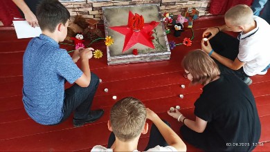 Участники почтили память жертв минутой молчания и зажгли свечи. В конце акции дети вместе с педагогами вышли на центральную аллею и раздали буклеты и памятки жителям села.